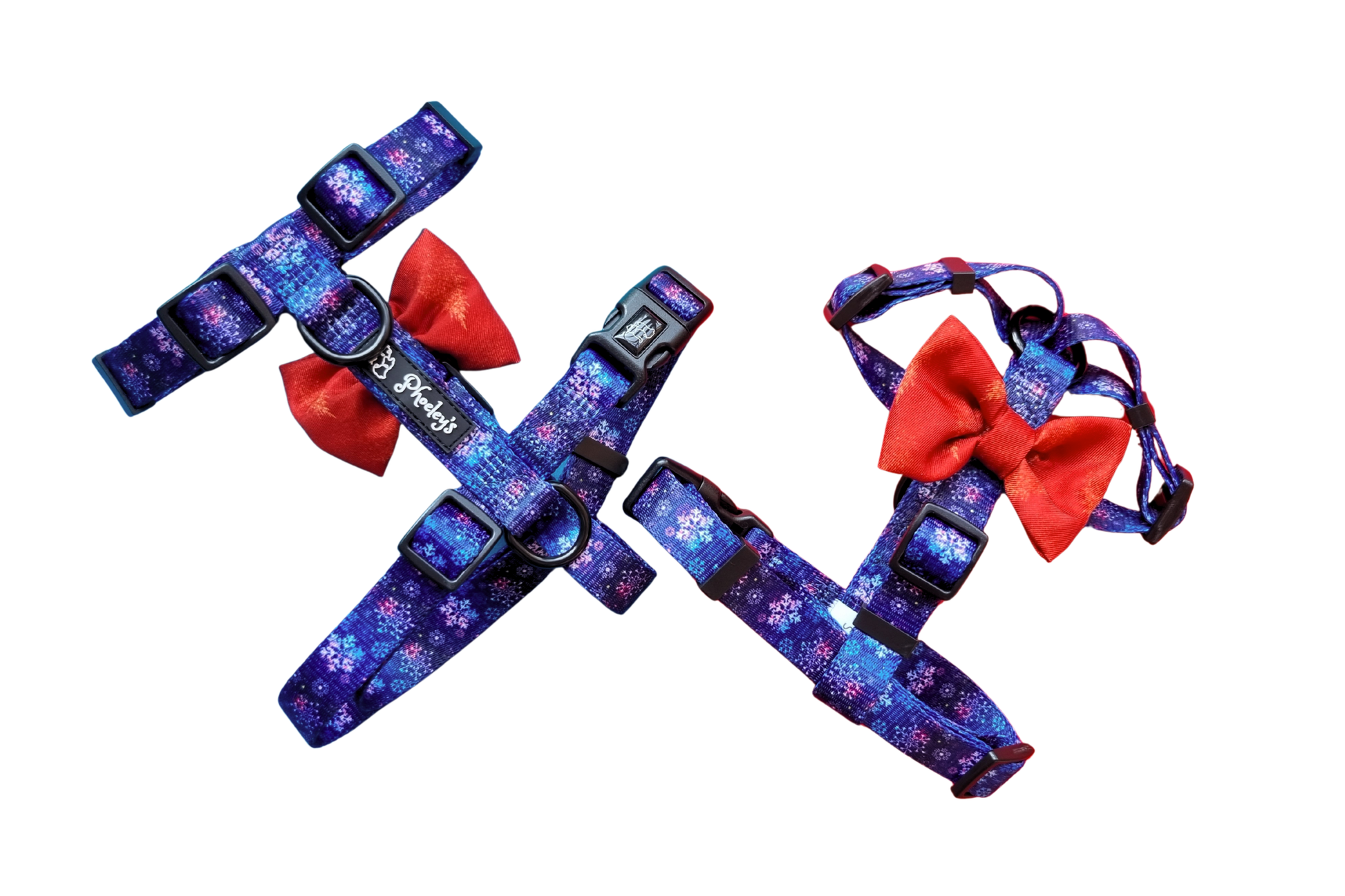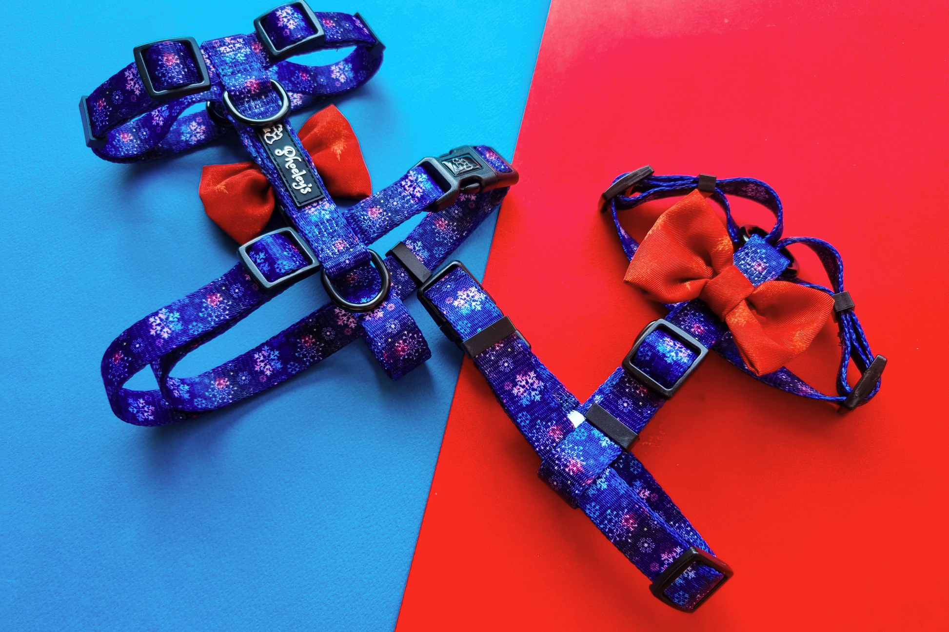 The little snowflakes and gold Christmas tree pattern red bowtie in front is such a sweet look for your pup, don't you think so !